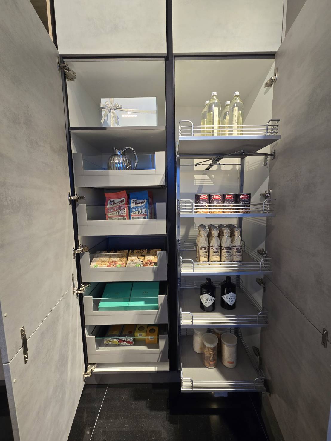 深色土灰色的門板源自大自然的中性色系,為廚房營造沉穩、平靜的氛圍。同時,這個空間也成為家人團聚、親朋好友相聚時,情感交流與共享美好時光的重要場域。