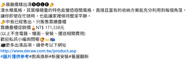 (以上不含電器、配件、檯面、安裝、運送相關費用 )