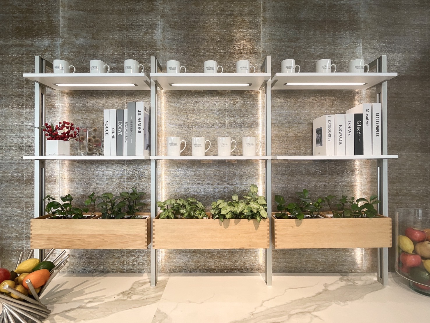 木色調配上深色清水模門板,半開放式層架適合展示個人收藏,風格和秩序和諧兼容創造出一種視覺上平衡美感。